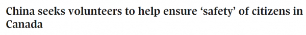 “中国招募志愿者,协助确保在加中国公民安全。”