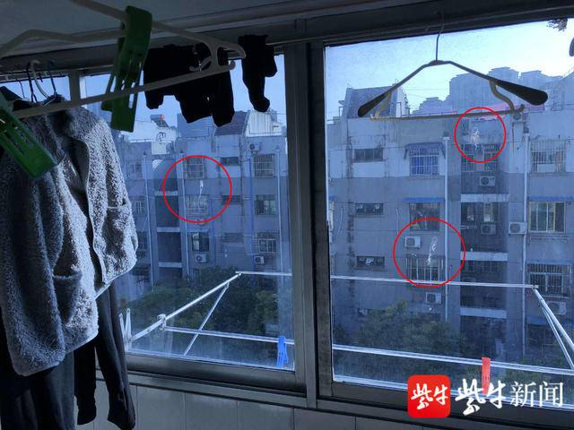 阳台玻璃上经常出现鸽粪痕迹,王女士只敢在房间里晾晒