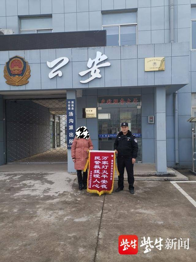 扬子晚报网12月26日讯(通讯员 王立前 曹明磊 记者 张凌飞)12月26日上午,宿迁市沭阳县汤涧镇的鲁女士将一面写有“万家灯火平安夜,民警救援暖人心”字样的锦旗送给毗邻的连云港市灌南县公安局汤沟派出所民警曹明磊,以表达对民警救助其患“妄想症”母亲的感激之情。