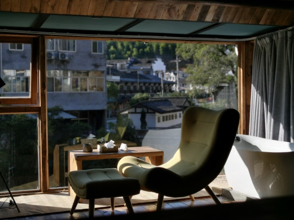 吴建波的“青瓷”民宿凡己落地窗边晒太阳