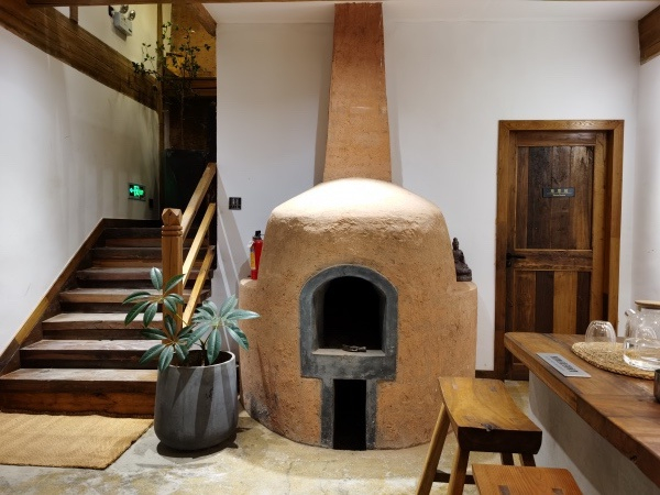 吴建波在民宿接待室模仿窑头做了个壁炉
