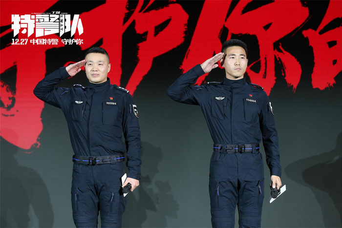 北京首映礼上蓝剑突击队余帅、吕忠涛两位警官亮相。