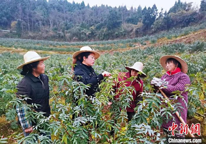 中新网成都12月27日电(王爵 李同周)记者27日走进四川南充西充县凤鸣镇圭峰院村,看到这里曾经的荒山,如今却变成了一排排一列列整齐的花椒园,空气里弥漫着土壤与花椒叶的味道。这些变化离不开一位“女汉子”,她就是吉春梅,被村民称为“花椒大姐”。