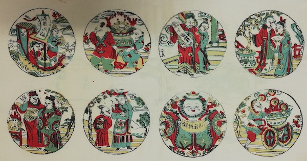 展览现场, 《一团和气》 清代 (苏州桃花坞 彩色套印) (中间)