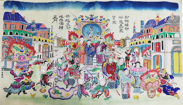 《接财神》,天津(杨柳青廉增戴记套印笔绘)