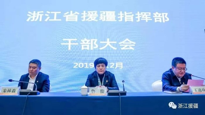 周密去新疆前不久,另一位来自东部省份的年轻干部也来到援疆一线。12月18日,浙江省援疆指挥部召开干部大会,宣布朱林森任指挥部指挥长、党委书记。
