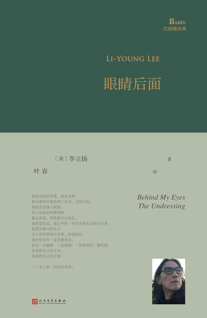 华裔美国诗人李立扬(Li-Young Lee)对于许多中国读者来说,甚至还比不上阿多尼斯有名,但其实他在中国被已译介了两本诗集《带翼的种子• 怀念》《在我爱你的这座城》,《眼睛后面》是国内译介李立扬的第三本诗集,收录于“99读书人”策划的“巴别塔诗典”系列。某种程度上,李立扬是一位被低估的诗人,且不说他出身望门(母亲为袁世凯的孙女,父亲曾做过毛泽东的私人医生),单就诗歌品质而言,他也应该跻身一线诗人的行列。譬如这首诗:“我最喜欢的门通向两方:/接受和接受。我的心/在其间摆动,从感恩/到感恩,每日千次,/我心的赤足/也每日千次/擦过死亡凸凹的头。”是不是有些里尔克的感觉?