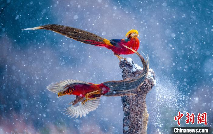 四“鸡”如“翼”(注:四季如意的谐音)——《冬》。 山西省林业和草原局提供 摄