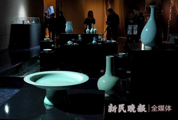 图说:本次展览展示了部分汝窑复烧精品 新民晚报记者周馨/摄