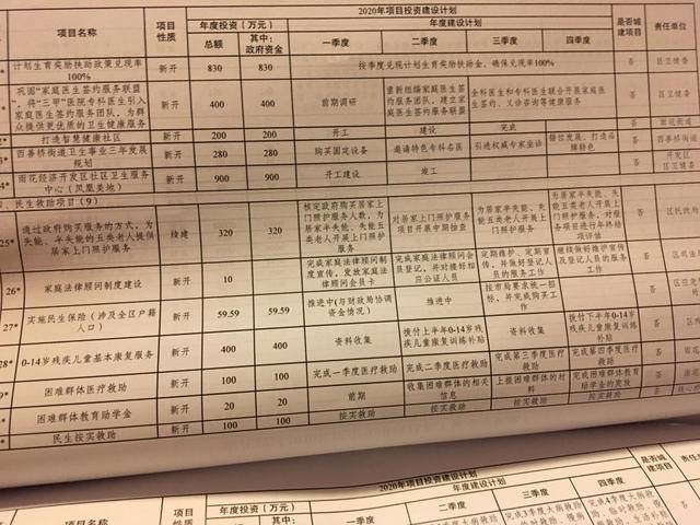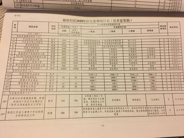 根据介绍,截至11月底,32件民生实事已完成项目16件,吉庆里等3所幼儿园、南外雨花国际学校、力小金地分校新林校区、软件谷小学等均已完成开办;春晓农贸市场、梅山集贸市场、翠岭银河农贸市场等已升级改造。春江新城二期小区、宏图上水社区卫生站等4个社区卫生站和梅欣农贸市场、雨花广场公厕等6件项目也将于月底前竣工。诸如建设8000套保障房的潘窑安置房、马家店保障房、共青团路四村老旧小区改造、安德门人防换乘中心建设、雨铁综合社区服务中心建设等群众关切的其他重大项目也均在按进度推进。与此同时,预计总投入近41亿元,涵盖13大类总数为107个的2020年度民生实事票决候选菜单也在评议会上和大家见面。