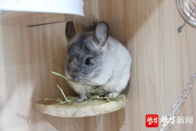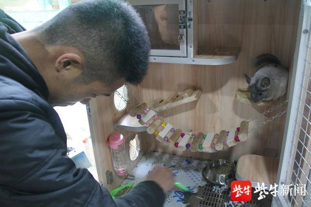 饲养员在打扫“龙猫”的笼舍
