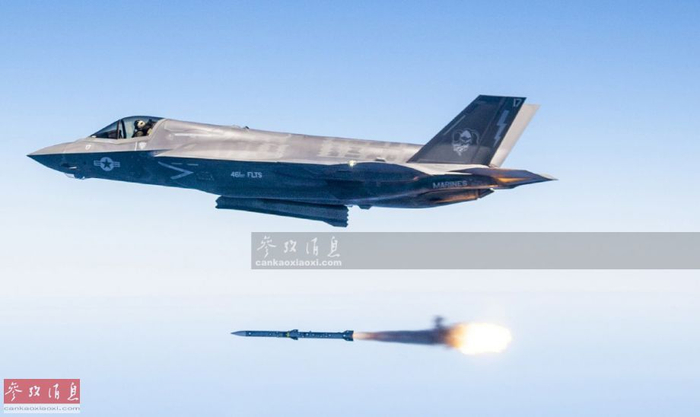 F-35B试射AIM-120中距空空导弹资料图。