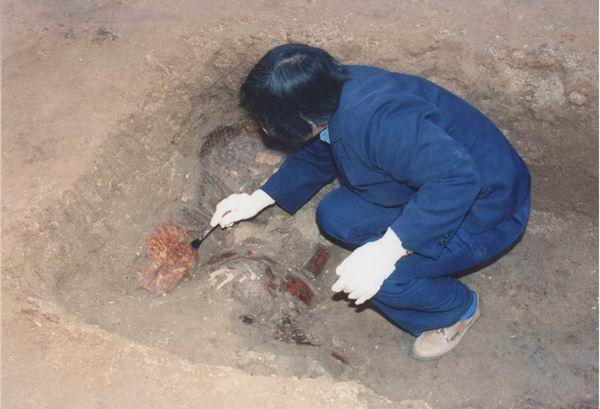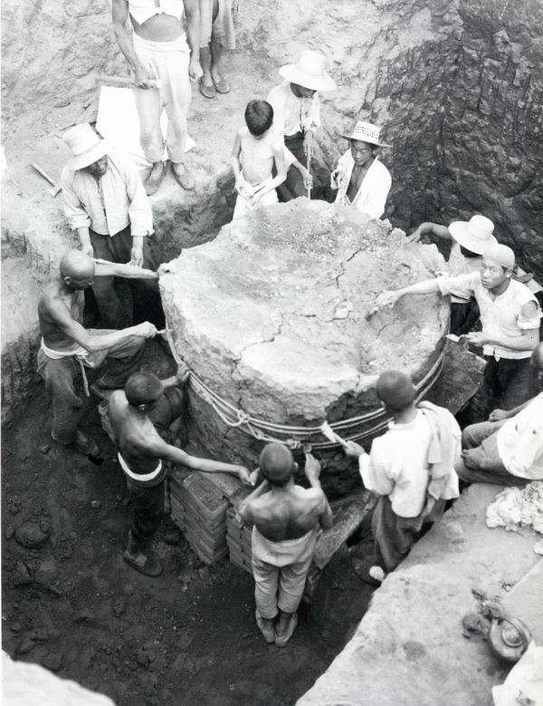 1936年YH127坑挖成灰土柱,装上箱底的情形