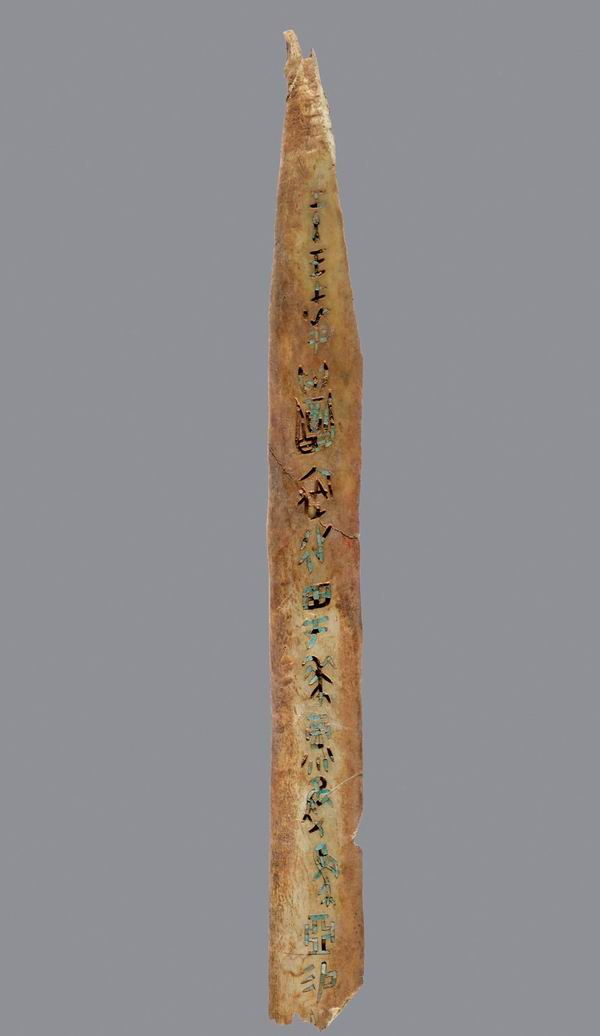 2005年安钢M11出土的绿松石镶嵌的骨雕文字