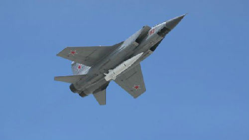 国防部说:“空天军米格-31截击机机组在指定区域完成了‘匕首’高精度空射导弹系统高超音速导弹的战斗训练发射。”