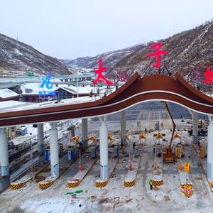 “除太子城互通收费站外,其他收费站收费棚底部采用木构架传统中国建筑元素,收费大棚柱顶采用中国传统的斗拱造型,形似古建的飞檐,展现出延崇高速各收费站整体简洁统一的中国传统建筑特色。”河北省高速公路延崇筹建处房建科长张欣说。