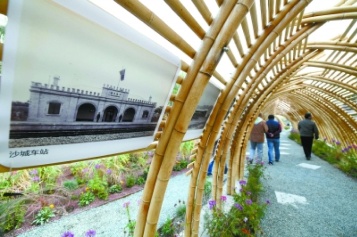 目前开放的五道口启动区全线长近800米,面积为1.7公顷,大约有两个足球场大小,从成府路13号线五道口城铁站一直贯通至北四环铁道桥。在启动区内,可以看到,原来的铁路原址已经被改造成为了休闲散步区,一条用竹子打造的绿廊花径贯穿其中,廊内还挂着京张铁路有关的历史老照片,供游客观赏。