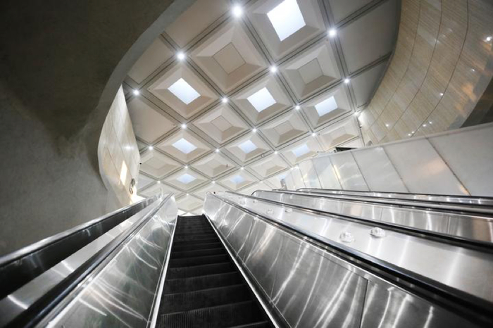 位于地下102米,八达岭长城站是当今世界最大最深的高铁地下车站,总建筑面积49500平方米,相当于“辽宁号”航母甲板的两倍,分成地面站房和地下站两部分。由于其深藏地下,进出车站的多部长道扶手电梯成为了车站最大亮点,其提升高度可达62米,是目前国内旅客提升高度最大的高铁地下车站,站在电梯上向上或向下行时,感觉电梯一眼望不到尽头。