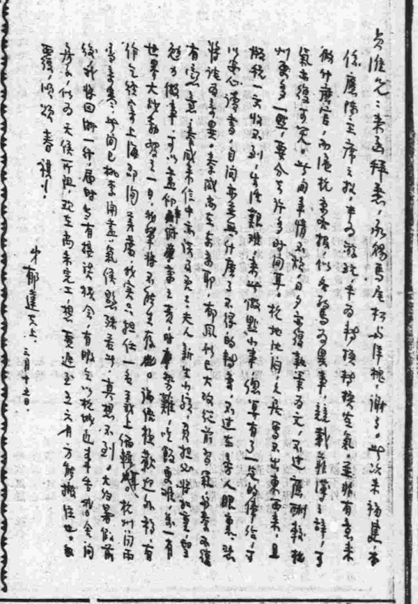 贞淮兄,书到久不覆,因在赶写一篇小说也。大约三两日后,小说可以脱稿,今天偷闲写此信。