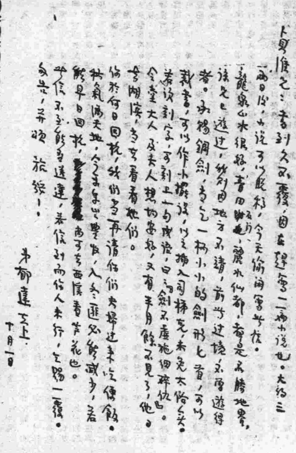 郁达夫遗札(10月1日致贞淮)