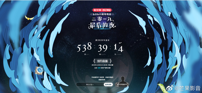 “2019最后的夜”由B站和新华网联合主办,于12月31日晚上8点正式开始,观众可通过B站与云视听小电视观看直播。在10、20年代交替,第一批80后,90后,00后集体迈入新的十年这一节点辞旧迎新,可能大家也会有更多关于成长的感怀吧。