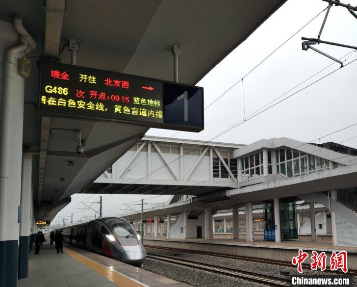 12月31日,伴随着G486次列车缓缓驶出瑞金火车站,红都瑞金与首都北京实现高铁直达, 邓浩亭 摄