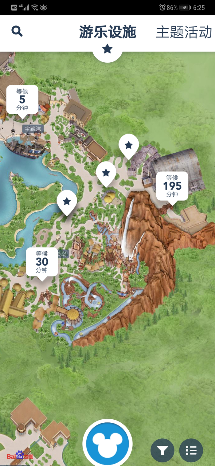 2019年12月31日下午6时25分左右,“翱翔·飞越地平线”等候时间要195分钟。“迪士尼度假区”APP 截图