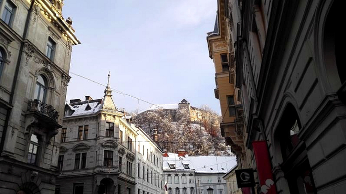 比较悲催的是,12月23号,我们去买了100欧元的干粮屯着,结果吃到跨年夜那一天吃完了,只剩下了巧克力,好在有些米,于是我们就蒸了米饭就着巧克力吃。比较幸运的是,卢布尔雅那是个很小的城市,所以从我们宿舍所在的五层楼可以看到市中心的跨年烟花。