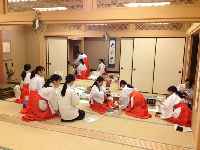 于是,在2012年12月31日到2013年1月5日期间,我都在浅草神社做巫女。我的主要任务是在被评为文化遗产的正殿里面帮助祢宜(神社中,对神职人员的称呼)祭祀和给前来祈福的人倒御神酒。六天里,从日本关东黑道老大、政客、演艺明星到普通百姓和小学生,我见识了很多形形色色来朝拜的人。神奇的是,在日本没人把神教当做宗教,只是当做传统来看待。别问我怎么知道的,你要是见识了神官都过圣诞节唱圣诞颂歌就知道我为啥这么说了。
