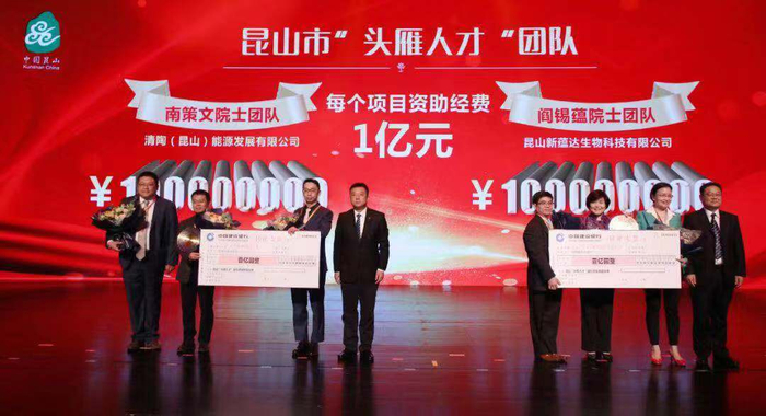 2018年11月3日,昆山产业科创中心建设推进大会举行,表彰首批昆山市“头雁人才”及团队南。策文院士团队、阎锡蕴院士团队分别获得1亿元项目资助。