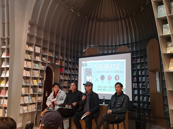 12月28日,在上海思南书局·诗歌店正式开业这一天,诗人王寅、沈苇、潘维与九久读书人副总编辑、法语译者何家炜来到这栋由东正教教堂改建而成的历史建筑,与广大诗歌爱好者分享他们阅读《巴黎评论·诗人访谈》时的心得体会。