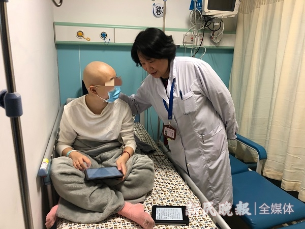 刚刚做完骨髓移植的Yuki是个上海姑娘,尽管因化疗的副反应,她的头发没有了,但乐观积极的她完全不介意自己的形象,见记者拍照,还比了一个大爱心。她爸爸告诉记者,女儿生病后休学,三个月的时间里已经看完了七八十本书,画了无数画。在蒋慧的建议下,还写住院日记。