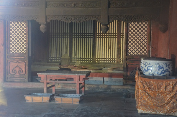 这种利用夹室存放物品的做法,在清宫中并不罕见。太和殿东西夹室和保和殿东西夹室都曾被当作“库房”。据记载,“所有先朝朱笔,恭请至太和殿东夹室,永远尊藏”,“立春日,礼部官属及顺天府府尹、府丞进春山宝座,交掌仪司,奉藏太和殿东暖阁。”