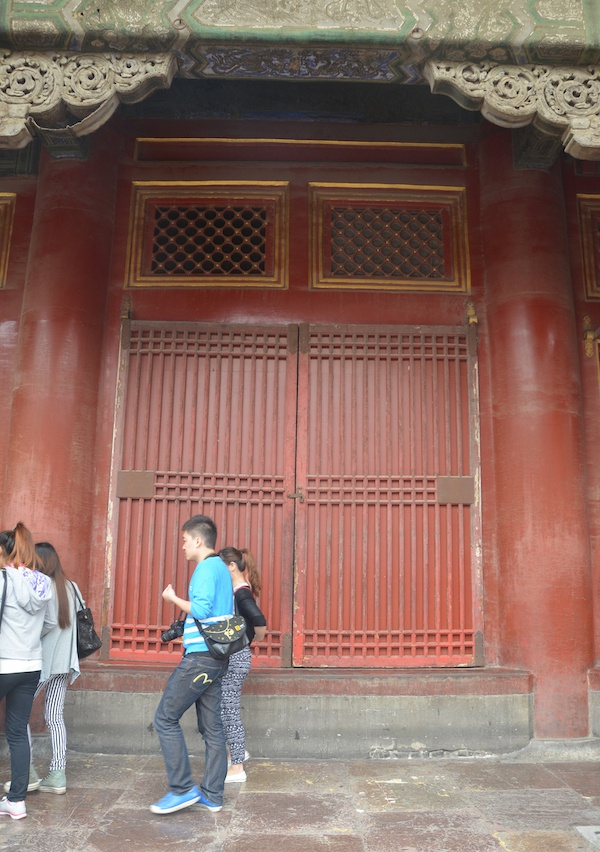 我们再绕到坤宁宫的北侧,可以看到坤宁宫正中的三间开门,但此门实际上“闭而不开”