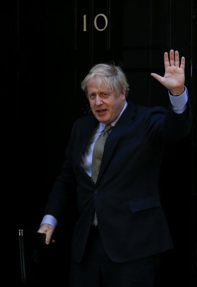 2019年12月13日,鲍里斯·约翰逊在唐宁街10号首相府发表演讲后返回。新华社记者 韩岩/摄