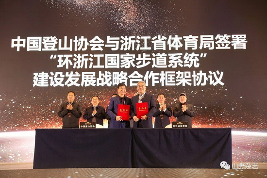 在此次行业峰会上,中国登山协会与浙江省体育局签署了“环浙江国家步道系统”建设发展战略合作框架协议,助推我国国家登山健身步道的建设。