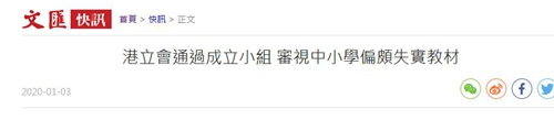 香港文汇网报道说,3日上午,立法会教育事务委员会会议上,以17票赞成,11票反对,无人弃权,通过新民党立法会议员容海恩建议——成立小组委员会研究幼儿园、中小学教科书及教材编制。