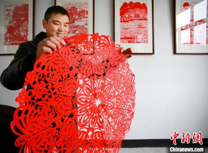 原标题:浙江台州剪纸艺人:一把剪刀变幻“纸上艺术”