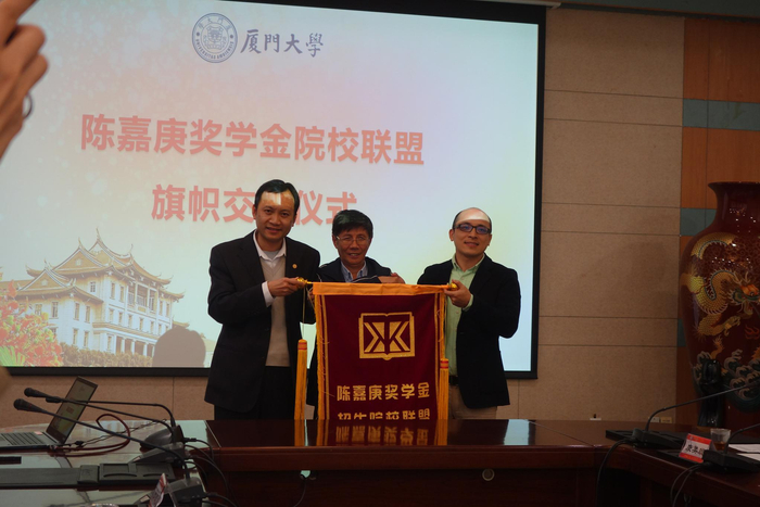 1月2日下午,我校在颂恩楼215会议室举办陈嘉庚奖学金院校联盟2019年工作总结会,总结联盟过去一年的工作,举行联盟旗帜交接仪式。厦门市委统战部常务副部长何秀珍,陈嘉庚教育基金会理事长何福龙,我校党委常委、组织部部长、统战部部长孙理,学生处处长李峰,联盟其他院校负责人、我校招生办、教务处、研究生院和国际处相关人员出席了本次会议。仪式由学生处副处长许美霞主持。