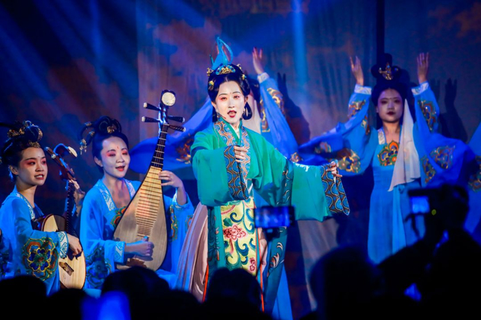 以前蜀开国皇帝王建墓石刻“二十四伎乐”为蓝本创作的大型国乐观念剧《伎乐·24》,在本次盛典中上演精彩片段,正式揭开这部备受关注的国乐剧的神秘面纱,让所有来宾一窥堪称完美复刻的唐音乐典。