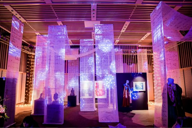 唐代有“草圣”之称的怀素书法被创新性的以巨型垂帘进行艺术演绎,而当代著名画家苏茂隆先生以唐代仕女为蓝本创作的“现代仕女图”,与巴蜀文化艺术陈列馆藏品中的佛陀头像遥相呼应,盛唐气象扑面而来。时装摄影师杨有元“在辋川别”影展则以国际化的语言重新解读盛唐,赋予唐风以全新时尚气质。