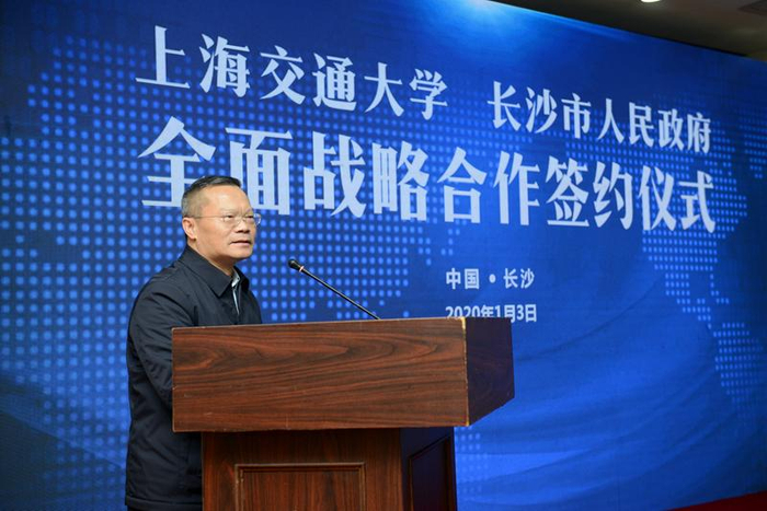 1月3日,长沙市与上海交大全面战略合作协议签订仪式举行。双方将在产业链建设、现代农业、医疗医学、航空航天、文化创意、地方治理智库、科技平台建设、人才引进与培养等方面开展全面合作。长沙市委副书记、市长、湖南湘江新区党工委书记胡忠雄、长沙市委副书记朱健、副市长邱继兴,上海交通大学党委书记姜斯宪、常务副校长丁奎岭院士、副校长毛军发院士,上海交大相关部门、学院负责人,长沙市相关委办局领导出席仪式。