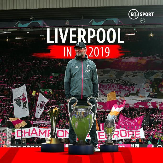 利物浦夺取了2019年的欧冠,以及之后的欧洲超级杯,一年中他们欧冠赛场上有过2场失败:上季四分之一决赛首回合客负巴萨,和本季小组赛客负那不勒斯。