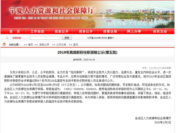 2019年宁夏高级职称任职资格名单出炉了!(第五批)目前正在公示中快来围观