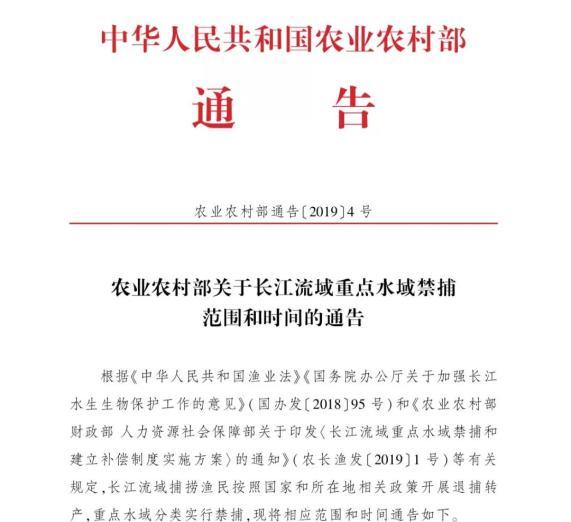 农业农村部官网近日发布关于长江流域重点水域禁捕范围和时间的通告,宣布:从2020年1月1日0时起实施长江十年禁渔计划。