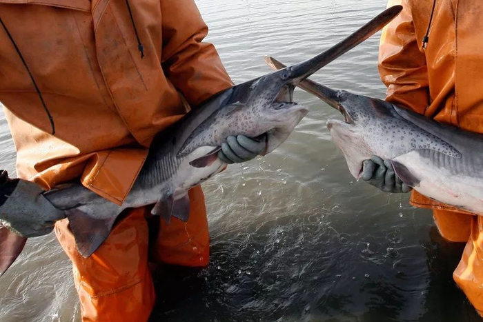 白鲟分布极为狭窄,和生活在密西西比河的匙吻鲟,是仅存的两种匙吻鲟科鱼类。