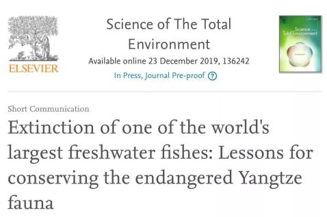 国际学术期刊《整体环境科学》(Science of The Total Environment)近日发布的一篇研究论文正式宣布:长江白鲟灭绝。