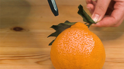 为了看得更直观,我们用橘子做实验“举个栗子”~