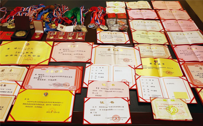 黄坤从中山体校毕业后,本来在银行系统工作,有着丰厚的待遇,但为了儿时的警察梦,2003年,中山公安发出的一纸招警公告,让他毅然放弃了稳定的银行工作,通过层层选拔进入了中山警队。