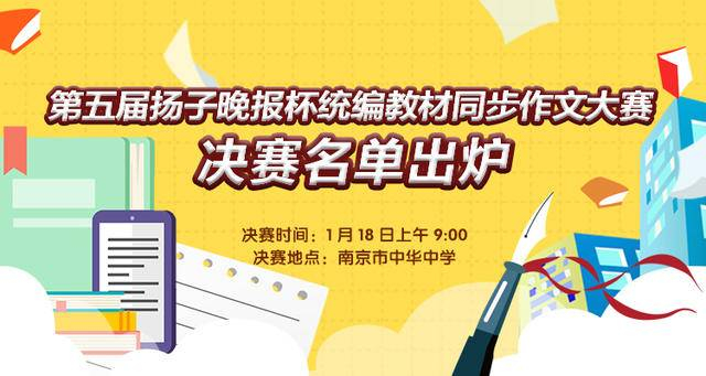 超10万选手参赛,1200名写作高手成功突围!经过3个多月的海选,第五届扬子晚报杯统编教材同步作文大赛决赛名单正式出炉!晋级选手将于1月18日在南京市中华中学迎来“巅峰对决”,现场写作一较高下,1月19日将举行颁奖典礼。完整版决赛名单详见文末,此外,选手也可以登录大赛官方网站扬子读写网(www.young100.cn)查看晋级名单。